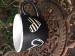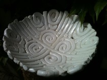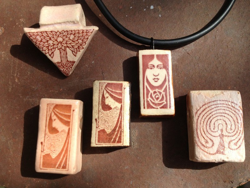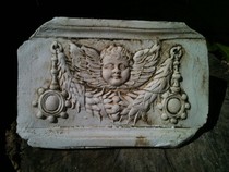 Das Material ist weißer Ton mit einer Metallleiste inkl. 3 Magnete mit Knochenmotiv.