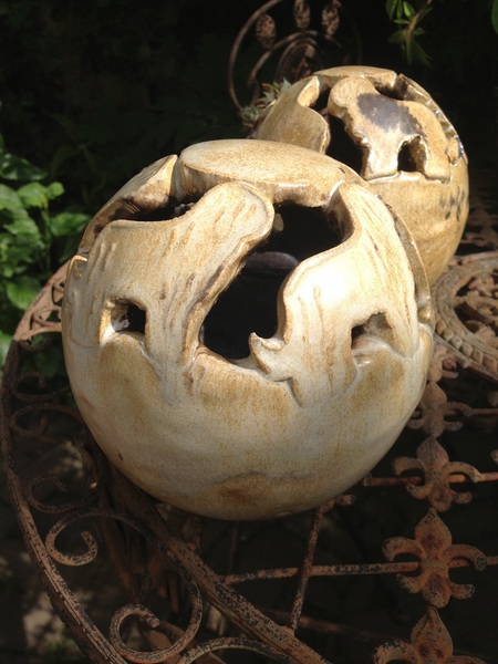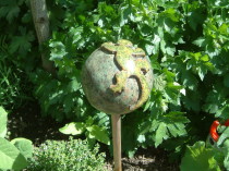 Aktuell verwende ich persönlich die Kugeln auf der Erde liegend oder erhöht auf einem Baumstumpf. In den nächsten Wochen will ich als Prototypen einen passenden Keramiksockel erstellen, den ich Ihnen dann an dieser Stelle als weitere Möglichkeit an dieser Stelle vorstelle.