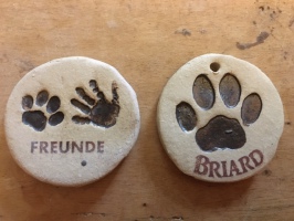 Die Kugeln sind auch mit Tiermotiven möglich - aktuell gibt es sie mit Briards /Hud und Katzen als Vorlage. Individuellen Wünschen (bspw. spezielle Hunderasse) lassen sich am besten per eMail klären.